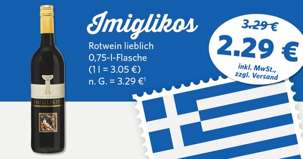 *Der Gutschein ist einmalig pro Person bis zum 08.10.2023 auf Aktionsartikel aus der "Griechischen Woche" gültig. Tabakwaren, Tchibo-Artikel, Babynahrung, Pfand und bereits reduzierte Artikel sind ausgeschlossen. Nicht mit anderen Gutscheinen kombinierbar.